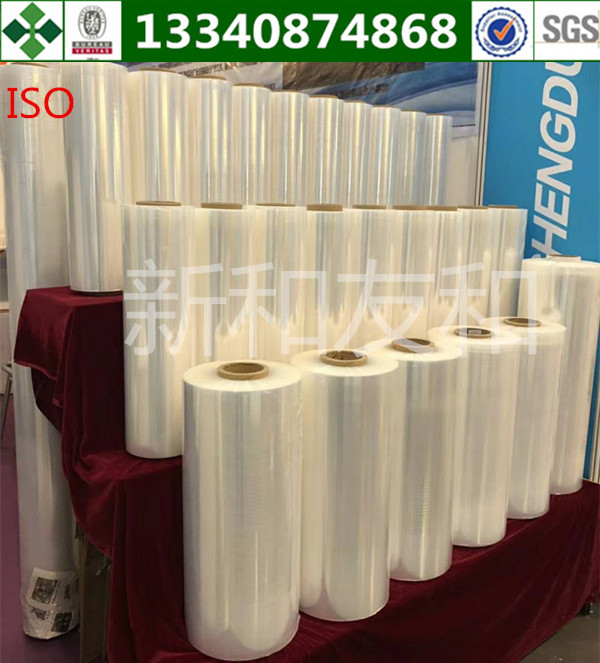 簡介—— PE纏繞膜主要由幾種不同牌號的聚工烯樹脂混合擠出而成,具有抗穿刺,超強度高性能,對堆放在托板上的貨物進行纏繞包裝,使包裝