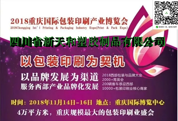 2018年11月14-16日重慶包裝展,四川新天和塑膠歡迎新老客戶,蒞臨我司展位N4-626。